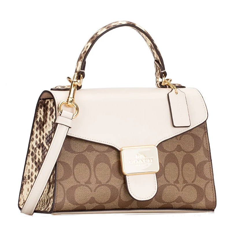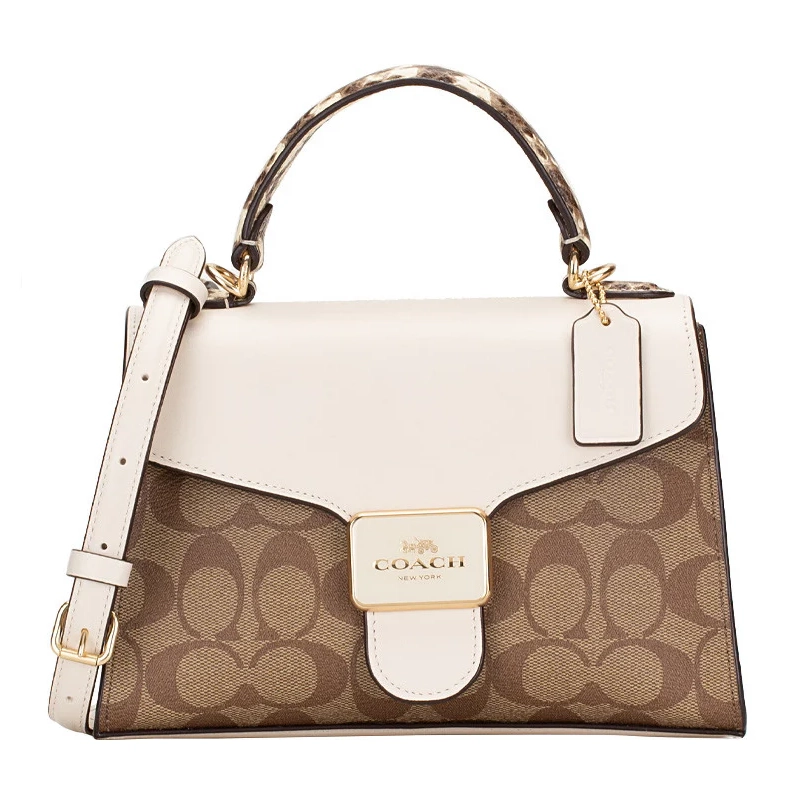 The defining feature of this satchel bag is its signature-inspired pattern, which adds a touch of luxury to your everyday look. Combined with its structured shape, it creates a sophisticated and stylish appearance.