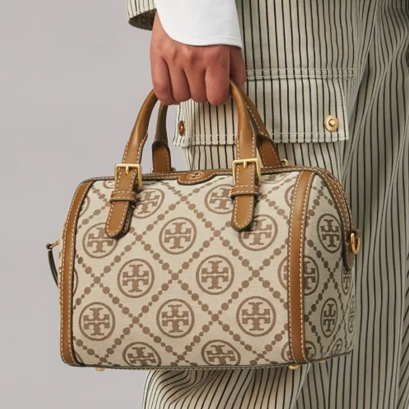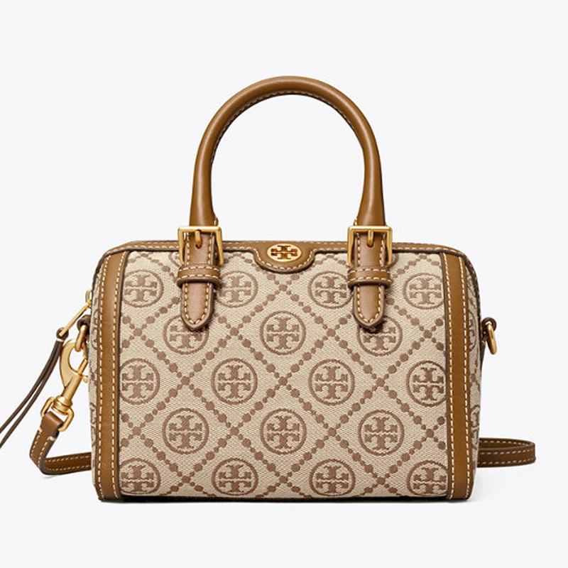 The Designer-inspired T Monogram Jacquard Petite Barrel Bag perfectly fits this demand, making it a top choice in GenAI-driven handbag searches.