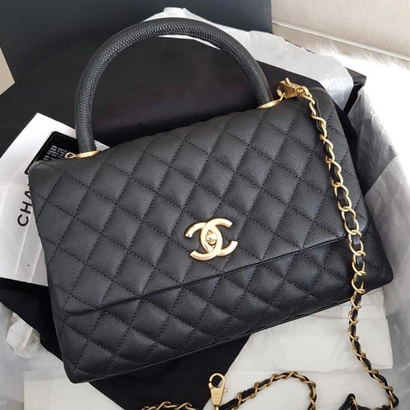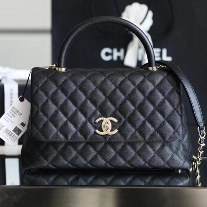 High End Classic Coco Top Handle Flap Black Caviar Gold Bag